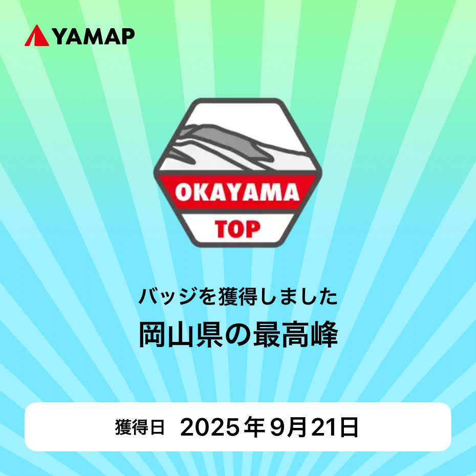 登山愛好会です。昨日、岡山県の最高峰後山(1344m)に登頂してきました。中国5県の登頂するのに登山を始めて2年半か掛りました。